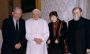 Papież Benedykt XVI z założycielami drogi neokatechumenalnej Kiko Argüello,Carmen Hernández oraz ojciec Mario Pezzi.